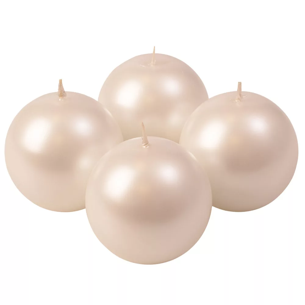 Adventná sada guľatých sviečok, 8cm - Metalická perleťová biela