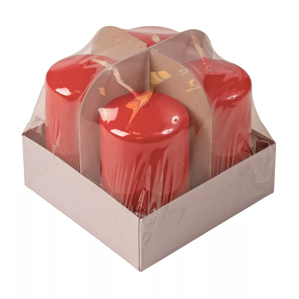 Adventná sada valcových sviečok, 8 x 5cm - Lakovaná červená
