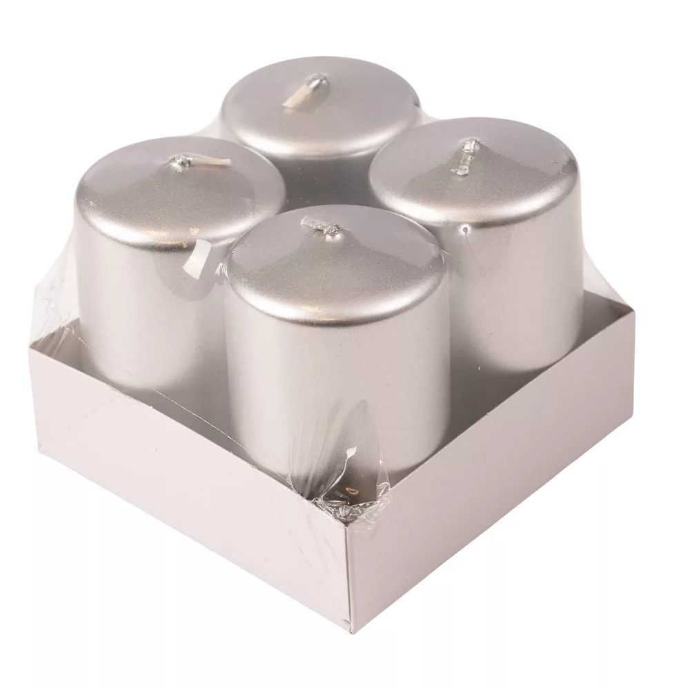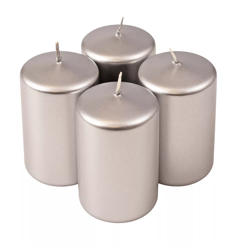 Adventná sada valcových sviečok, 8 x 5cm - Metalická strieborná