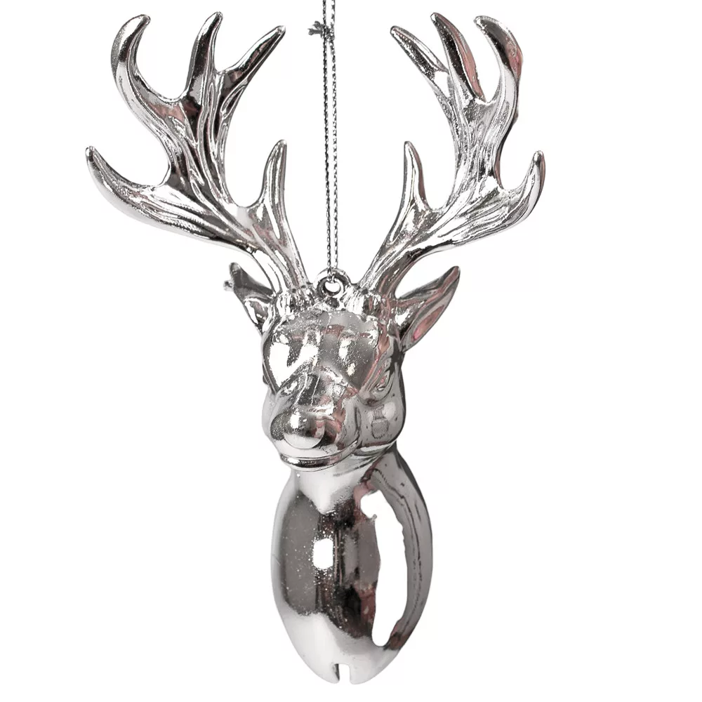 Akrylová jeleňová hlava, vianočná ozdoba, 14 x 9 cm - Strieborná