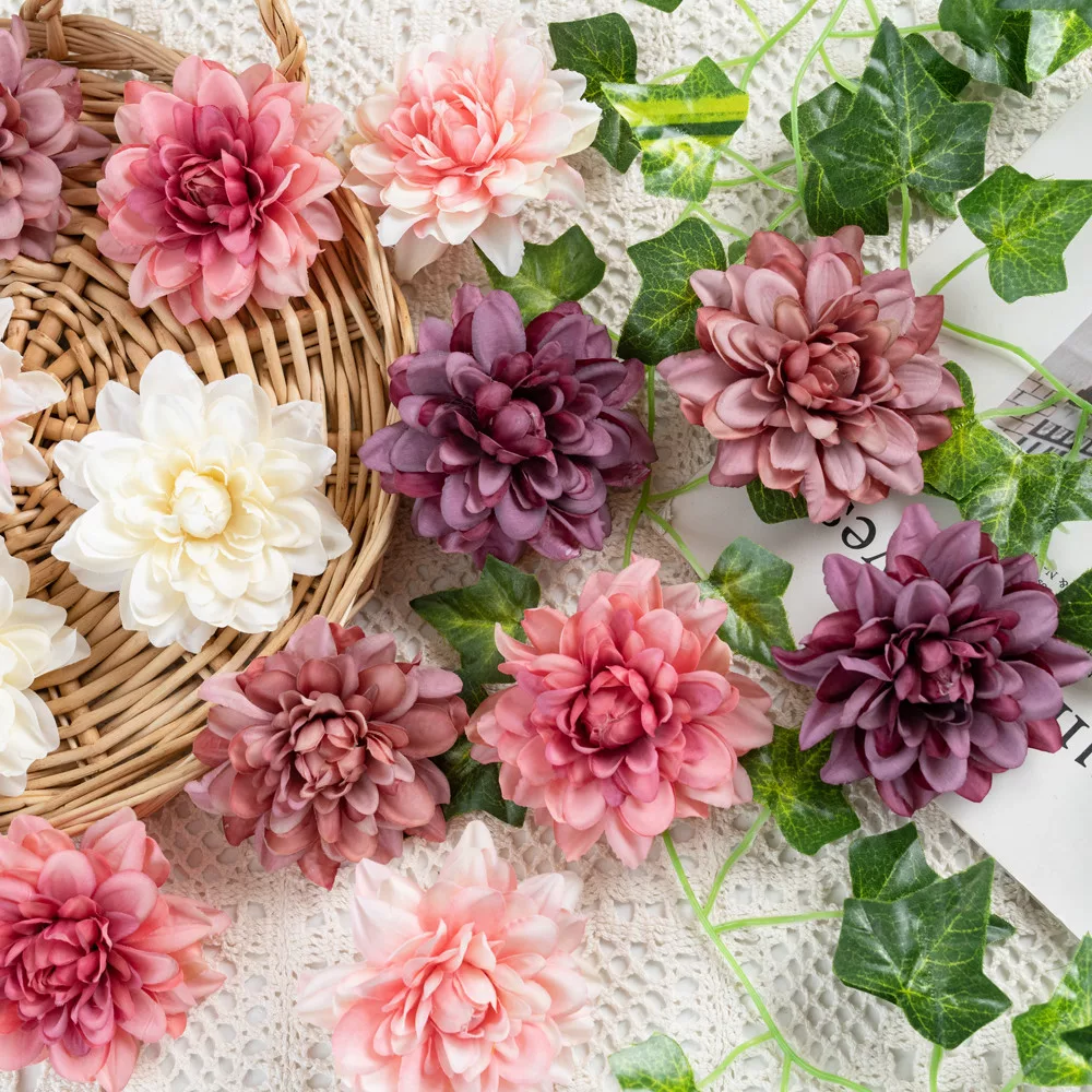 Jemne ružová hodvábna dáliová hlava, ktorá vytvára jedinečný a štýlový dojem. Tento 8 cm priemerový kvet je perfektnou voľbou na extravagantné a moderné aranžmány.5999093348975