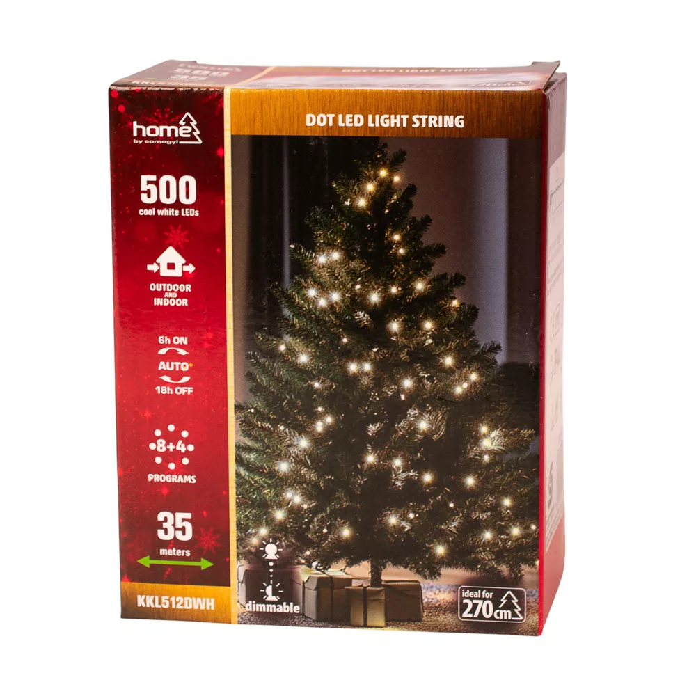 Moderná a výrazná svetelná dekorácia, ideálna do exteriéru aj interiéru. Táto DOT LED svetelná reťaz s 500 studenobielymi LED diódami poskytuje čisté a pôsobivé svetlo, ktoré je perfektnou voľbou na sviatočnú výzdobu, do záhrad alebo na fasády. Priehľadný vodič je takmer neviditeľný, takže svetlá sú v centre pozornosti.