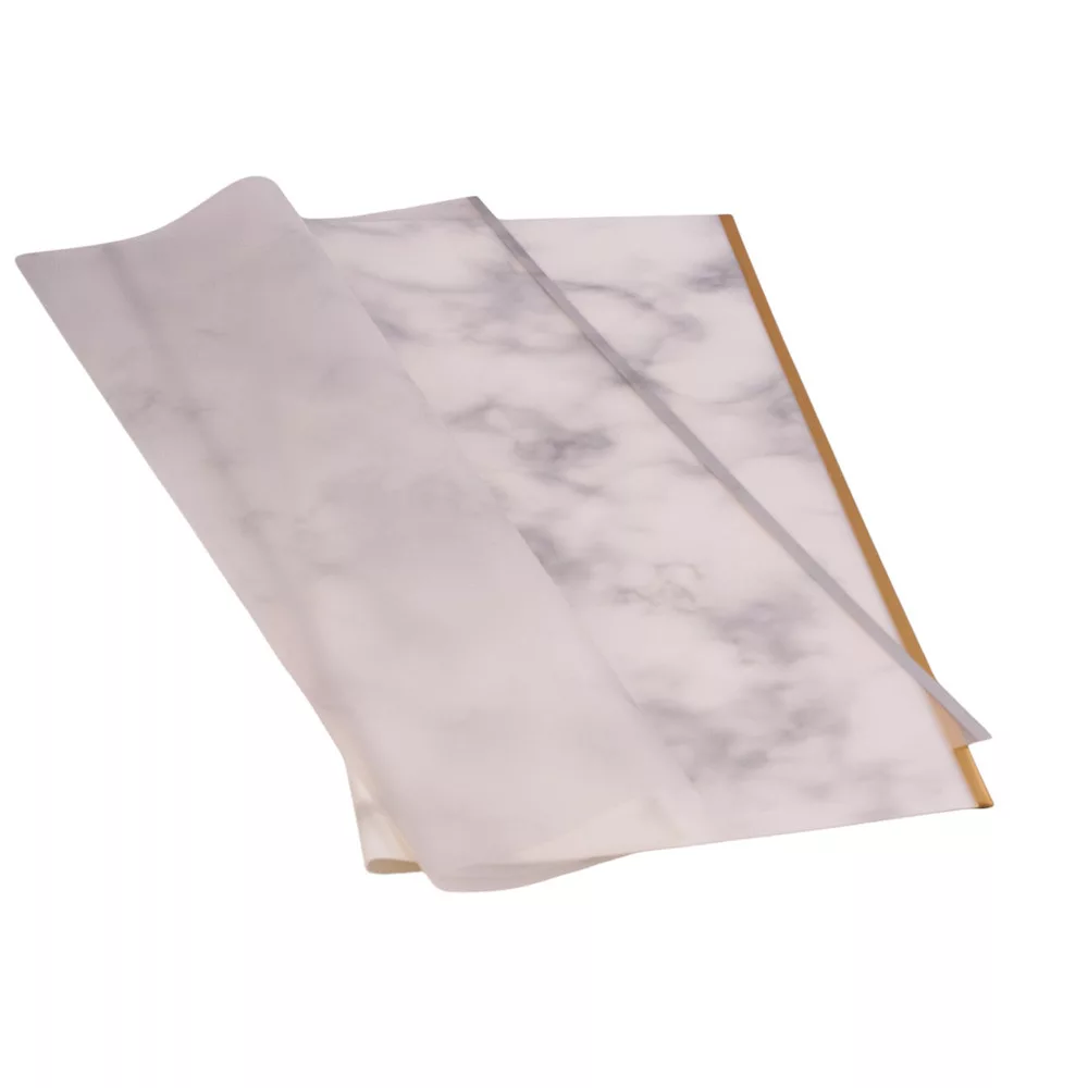 Fólia hárok s mramorovým vzorom a zlatým okrajom 57 x 57cm, 20ks. - Biela