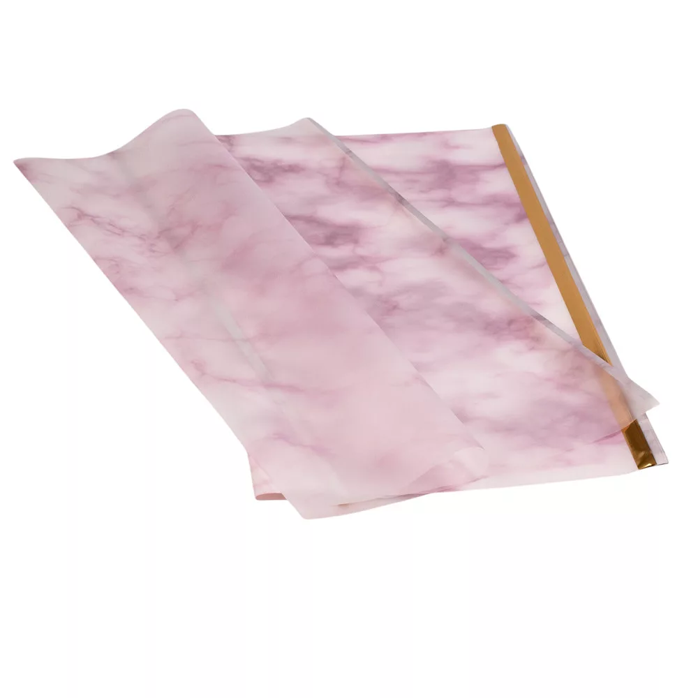 Fólia hárok s mramorovým vzorom a zlatým okrajom 57 x 57cm, 20ks. - Svetloružová