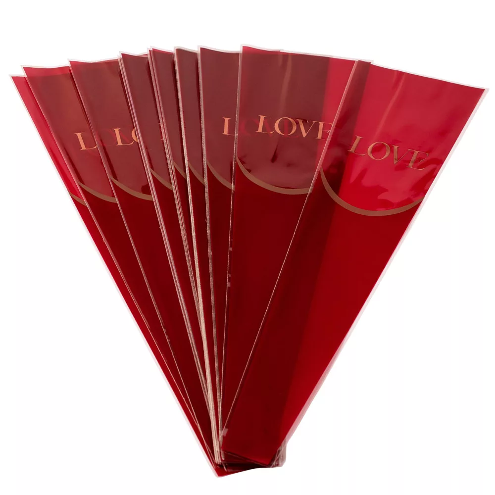 Fóliový sáčok na kvety „Love” 12.5 x 4 x 45 cm, 20 ks. - Bordová