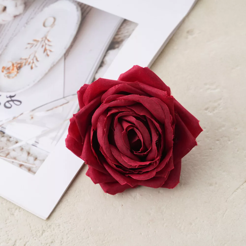 Hodvábna hlava ruže, 9cm - Červená