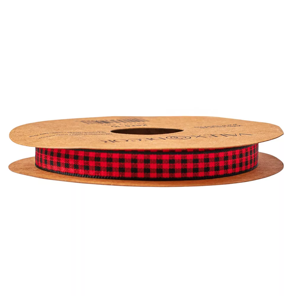 Károvaná stuha 10mm x 10m - Červená/Čierna
