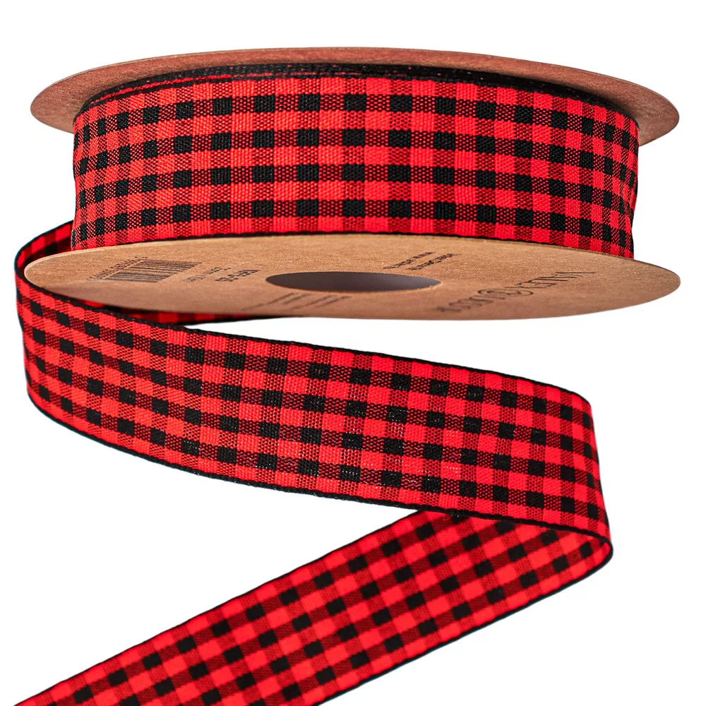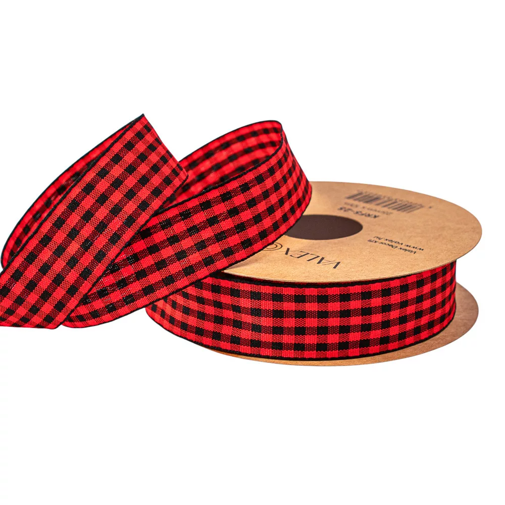 Károvaná stuha 25mm x 10m - Červená/Čierna