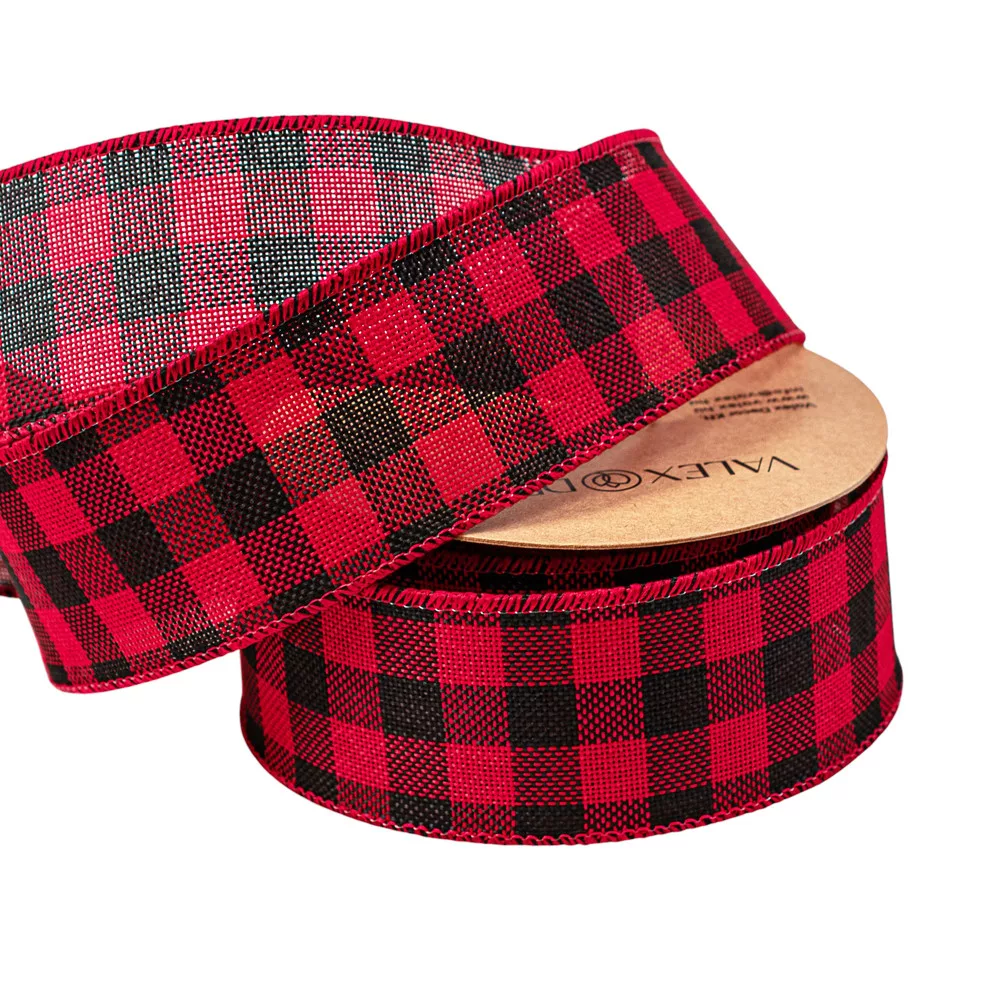 Károvaná stuha s drôtovým lemom 45mm x 10m - Červená/Čierna