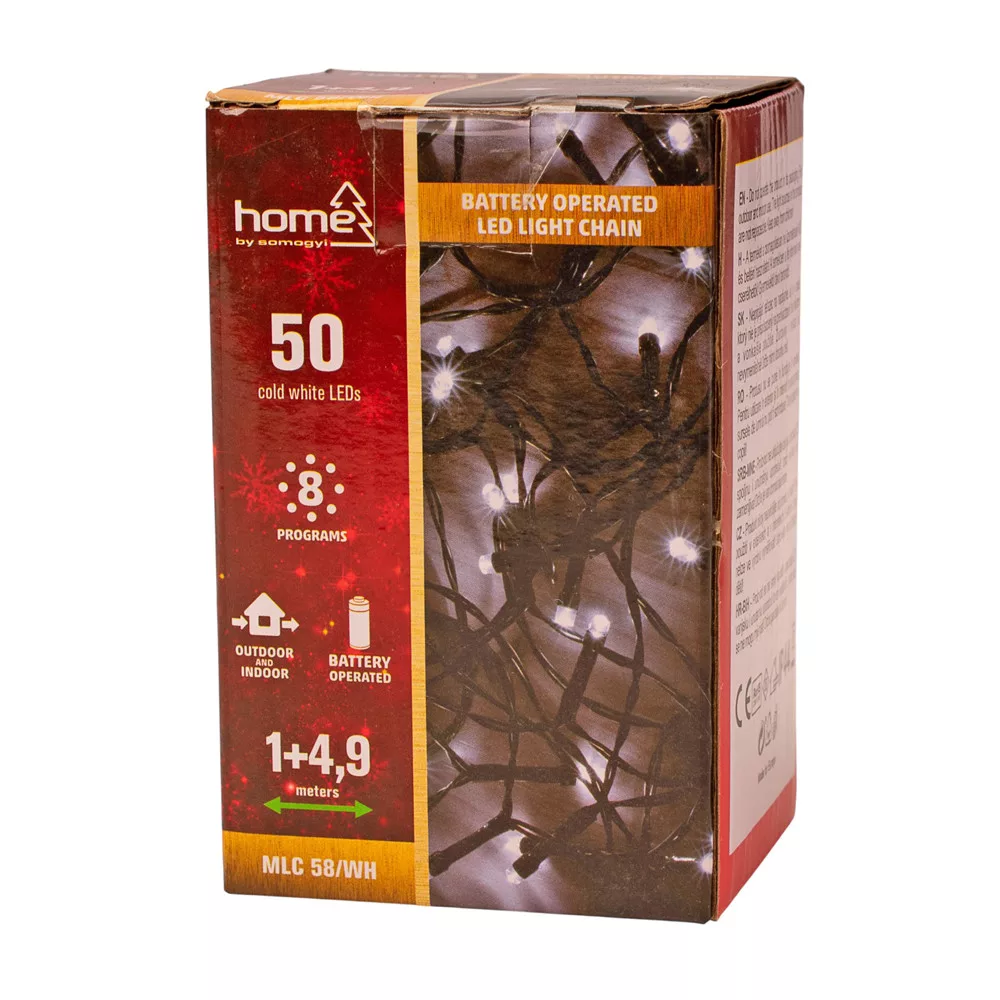 LED svetelná reťaz na batérie, 4.9 + 1m, 50 LED, studená biela, s časovačom