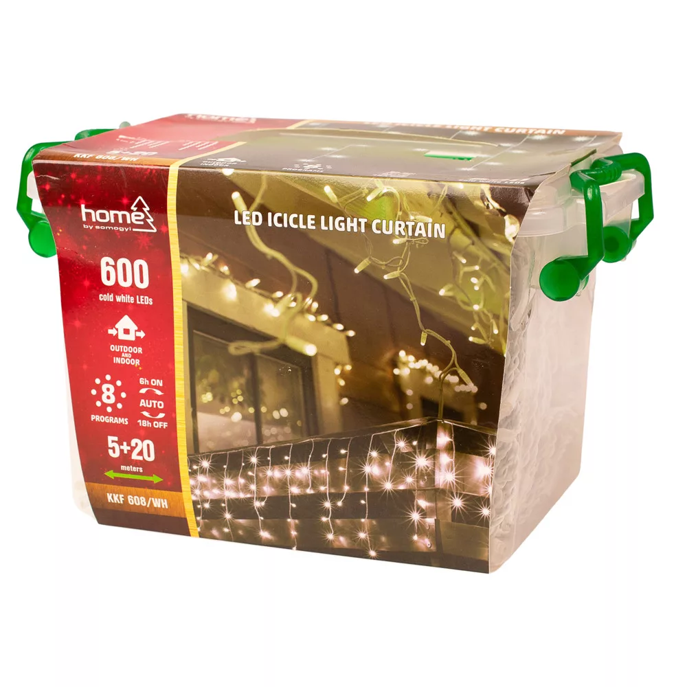 Impozantný LED svetelný záves veľkých rozmerov, ktorý vytvára oslnivý svetelný efekt vďaka 600 studenobielym LED diódam. Je vhodný do interiéru aj exteriéru, takže je ideálnou voľbou na sviatočnú výzdobu, podujatia alebo príjemné večerné osvetlenie.