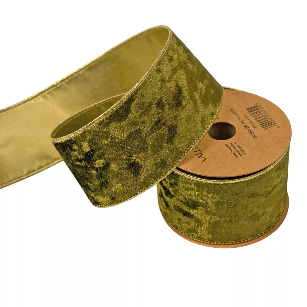 Machovo zelená zamatová stuha s drôtovým lemom 63mm x 5m