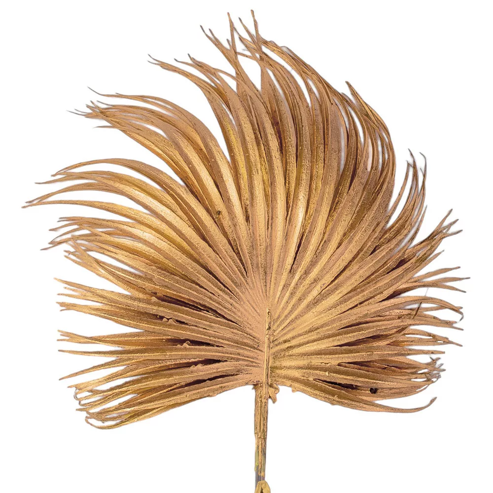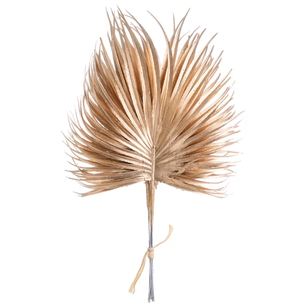 Metalický zlatý palmový listový zväzok, 6-stonkový, výška 33 cm, šírka 20 cm