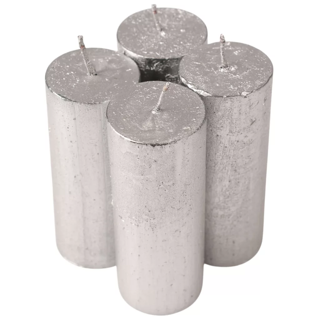 Rustikálna metalická adventná sada sviečok, 10 x 4cm - Strieborná