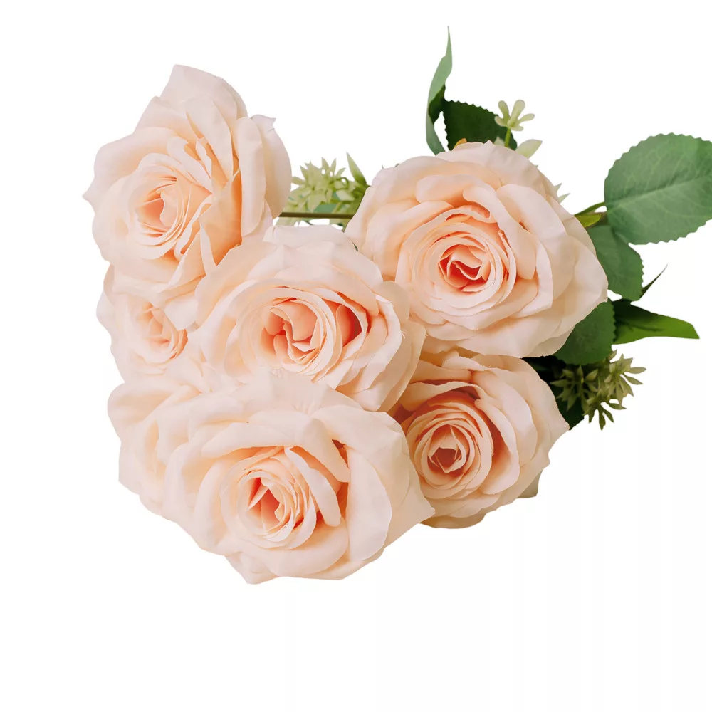 Ruža hodvábna kytica, 7-vetvová, výška 41 cm - Šampanská