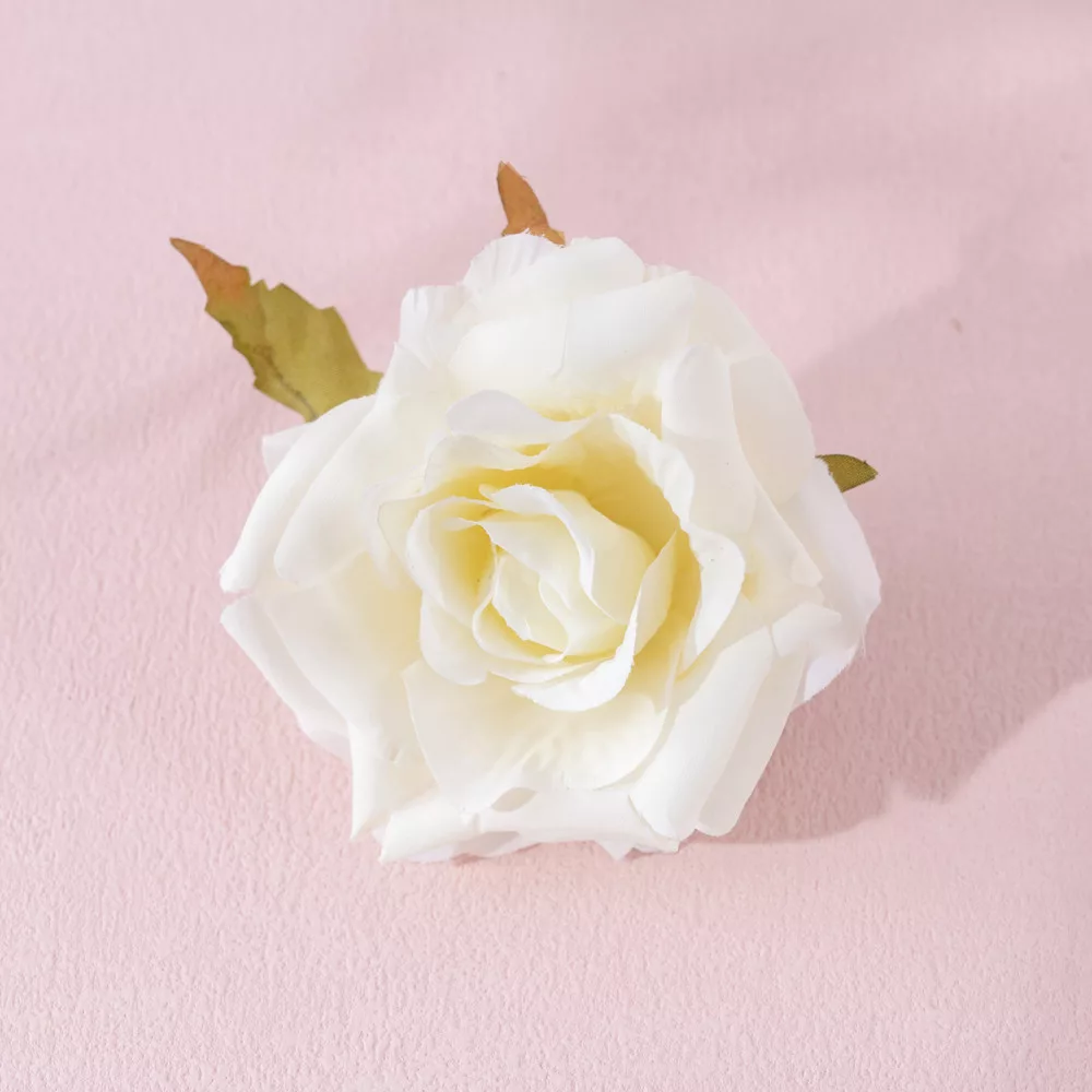 Ekrü hodvábny ružový kvet, ktorý zabezpečuje elegantný a čistý vzhľad. Tento 8 cm priemerový kvet je ideálny na vintage a romantické aranžmány.5999093347787