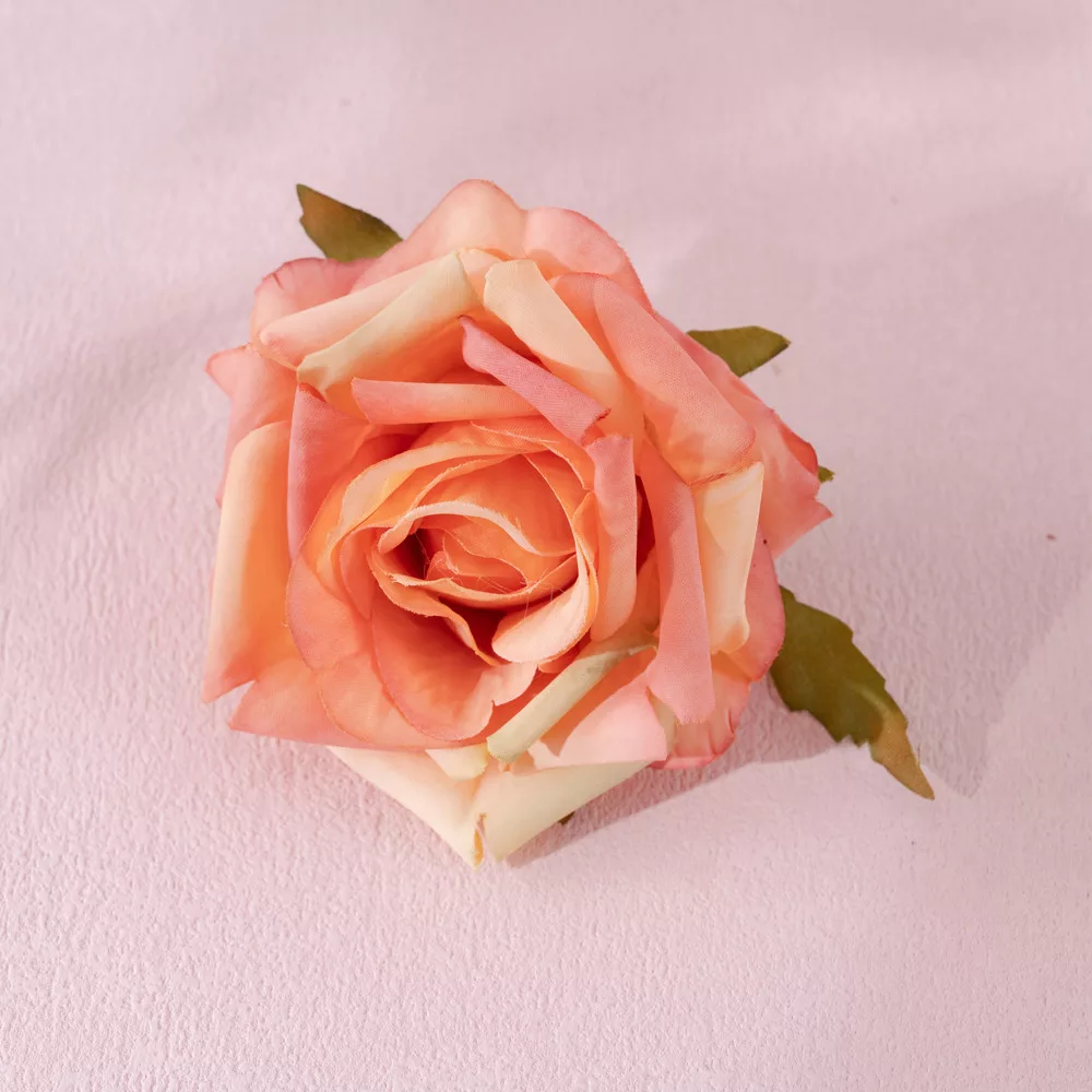 Oranžový hodvábny ružový kvet, ktorý vyžaruje hrejivosť a radosť. Tento 8 cm priemerový kvet je perfektným doplnkom do jesenných dekorácií alebo do energických aranžmánov.5999093347756