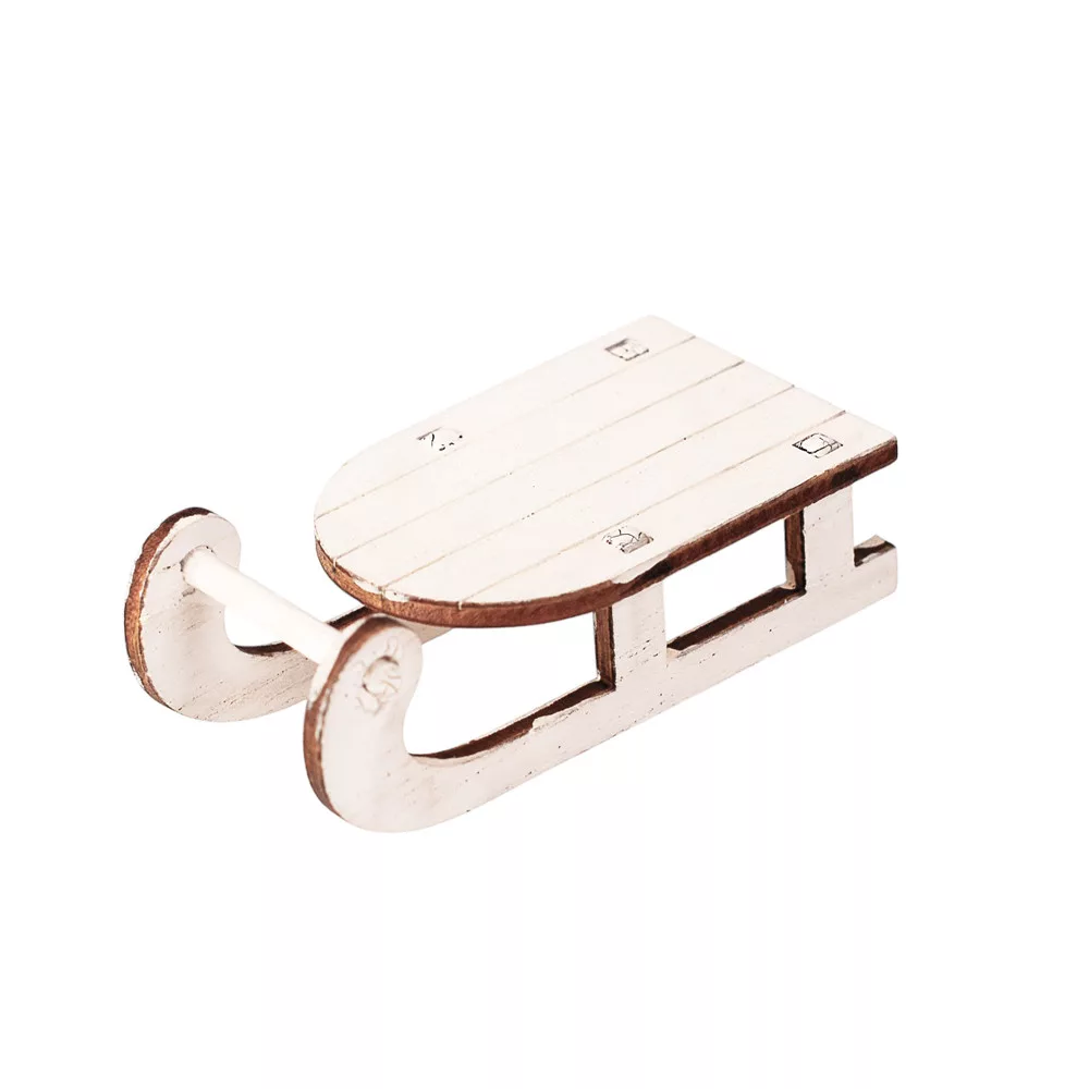 Sánky dekorácia, drevo, 3 x 6cm - Biele