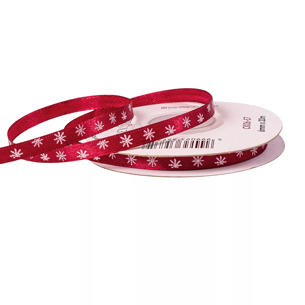 Saténová stuha s vločkami 6mm x 20m - Bordová