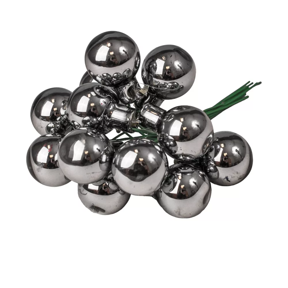 Sklenená guľôčka na drôtiku, lesklá sivá, priemer 2cm, zväzok 12 ks