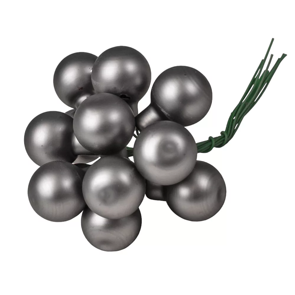 Sklenená guľôčka na drôtiku, matná sivá, priemer 2cm, zväzok 12 ks