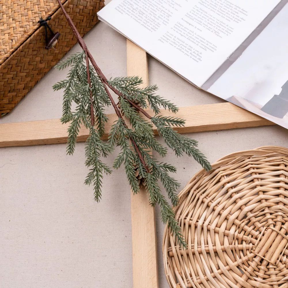 Tenká borovicová vetva so šiškami a drôtom, výška 63 cm