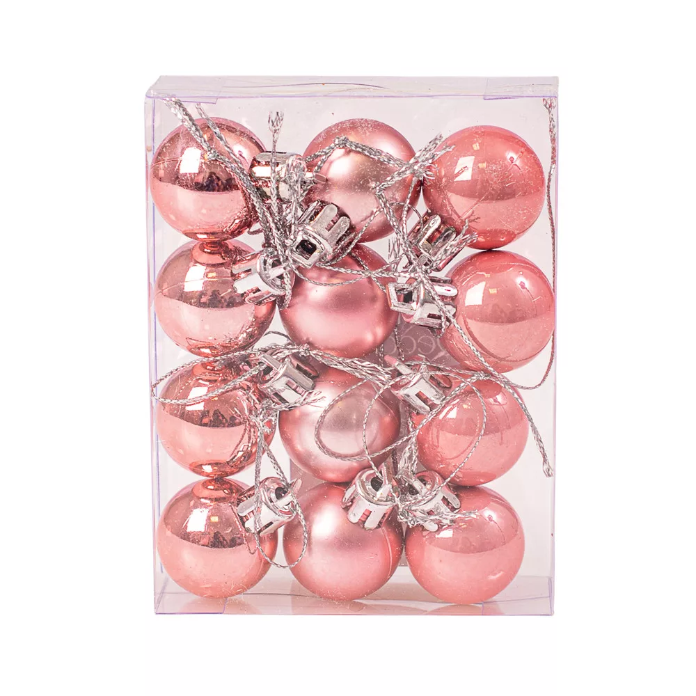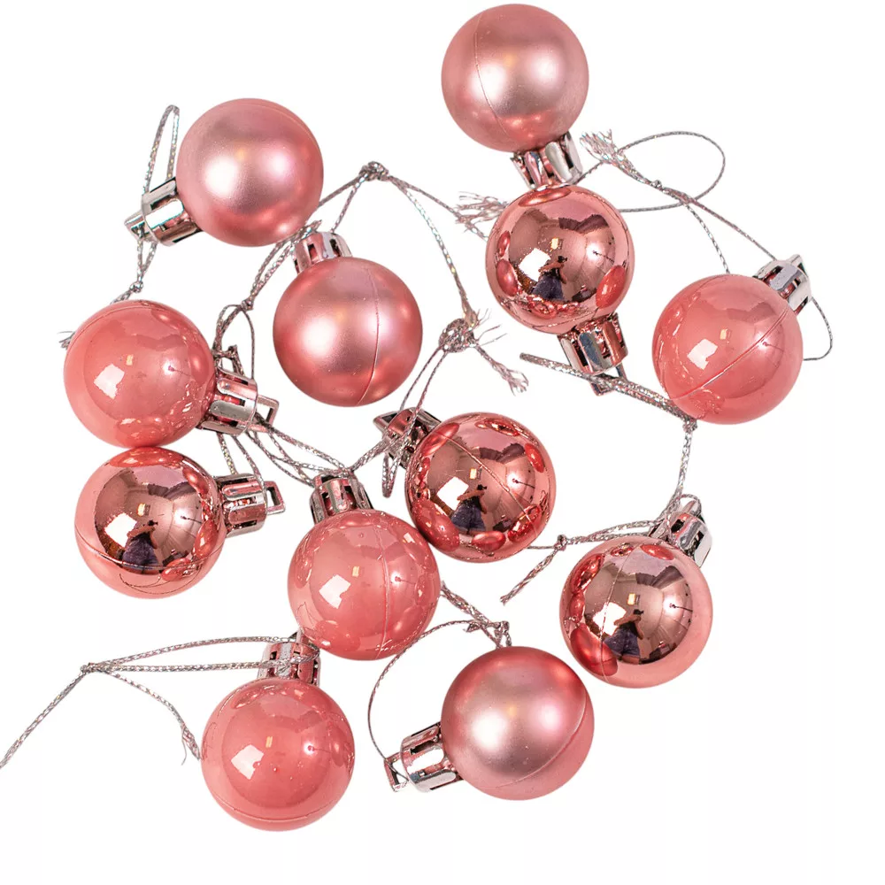 Vianočná sada 12ks gúľ, 2.5cm - Korálovo ružová