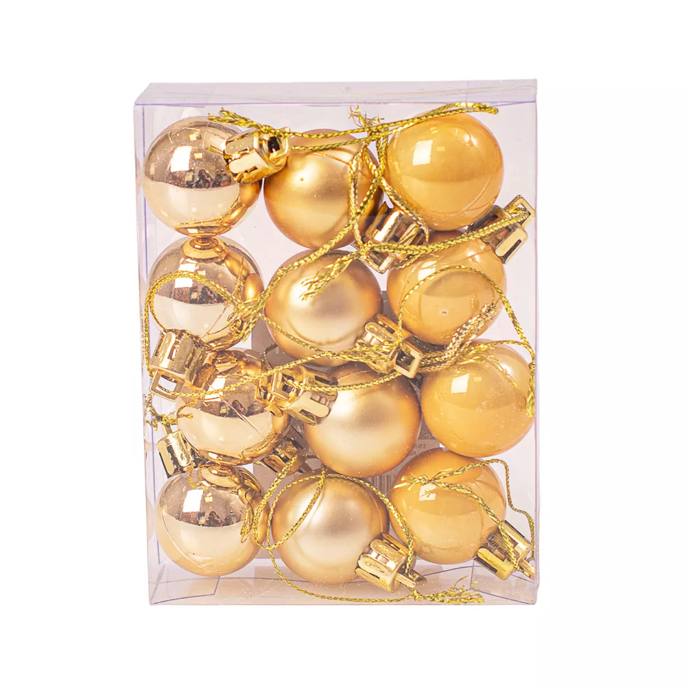 Vianočná sada 12ks gúľ, 2.5cm - Zlatá