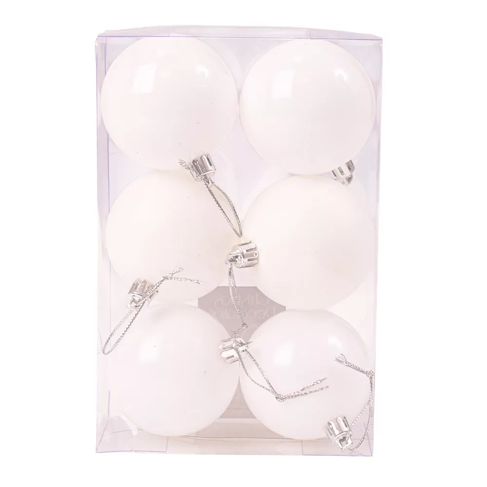 Vianočná sada 6ks gúľ, 6cm - Biela