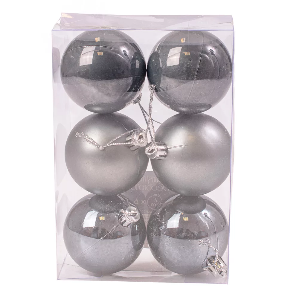 Vianočná sada 6ks gúľ, 6cm - Grafitová