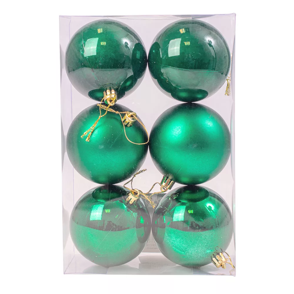 Vianočná sada 6ks gúľ, 8cm - Tmavozelená