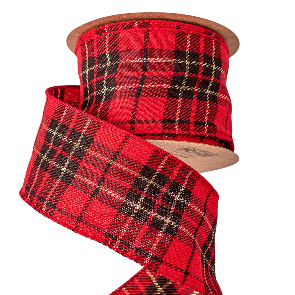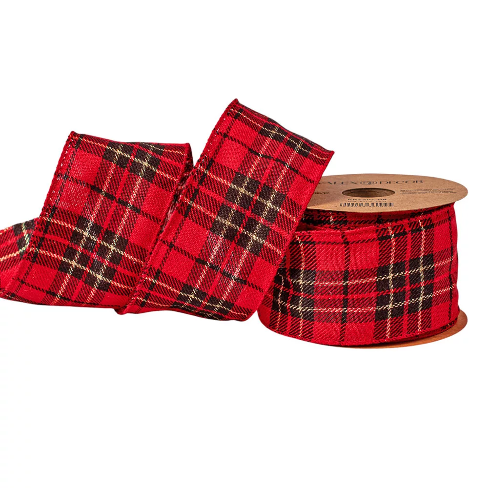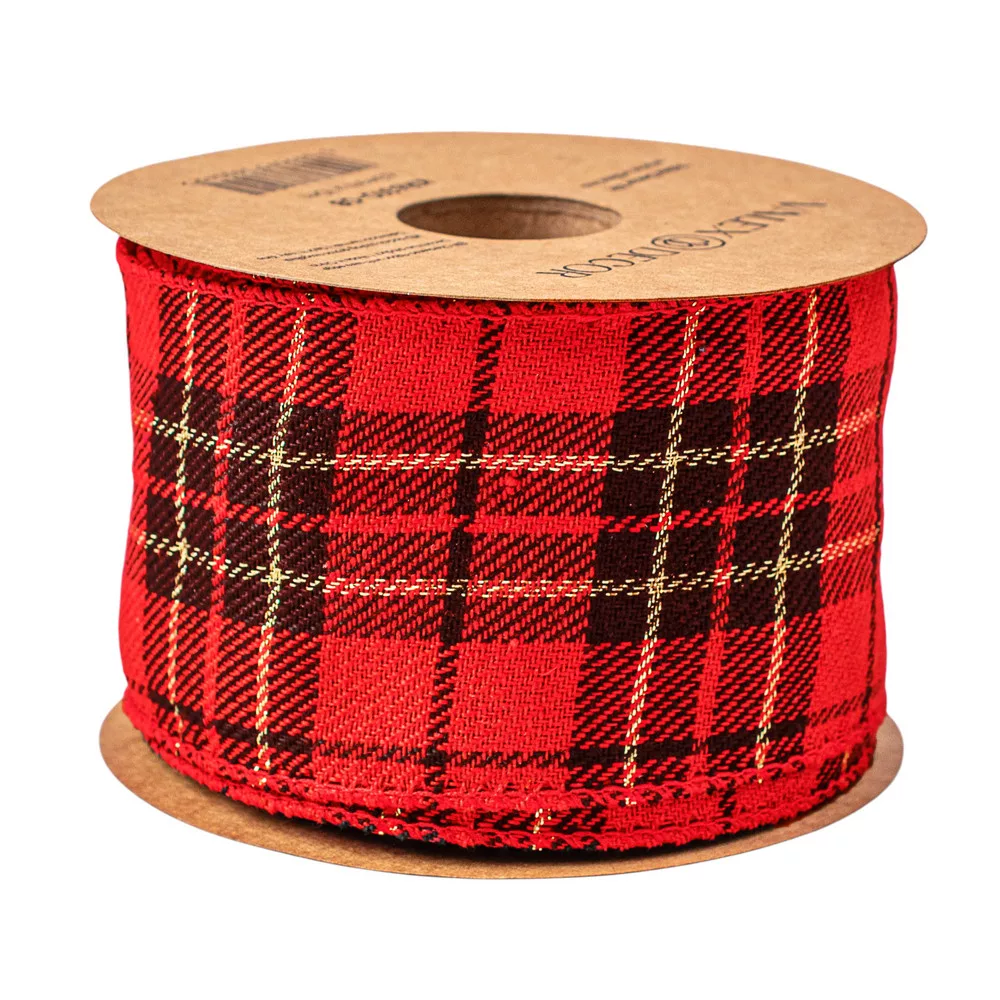 Vianočná škótska károvaná plyšová stuha s drôtovým lemom 63mm x 10m