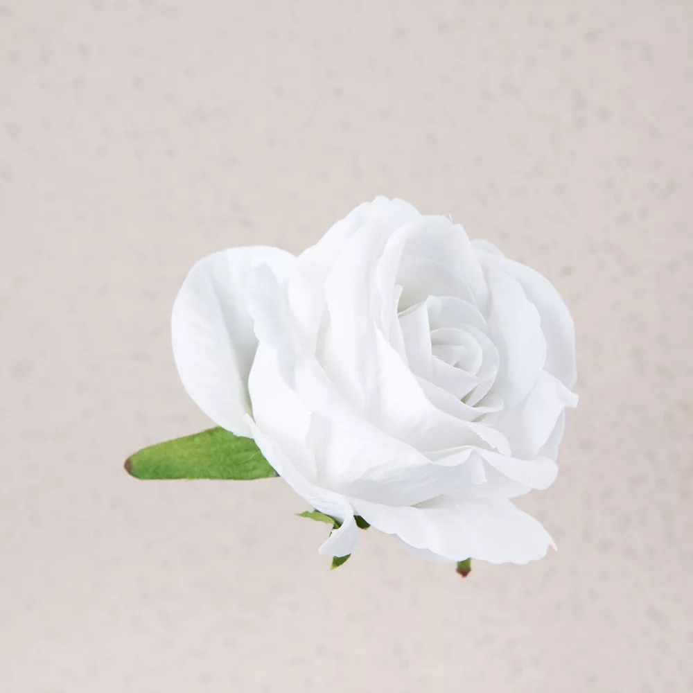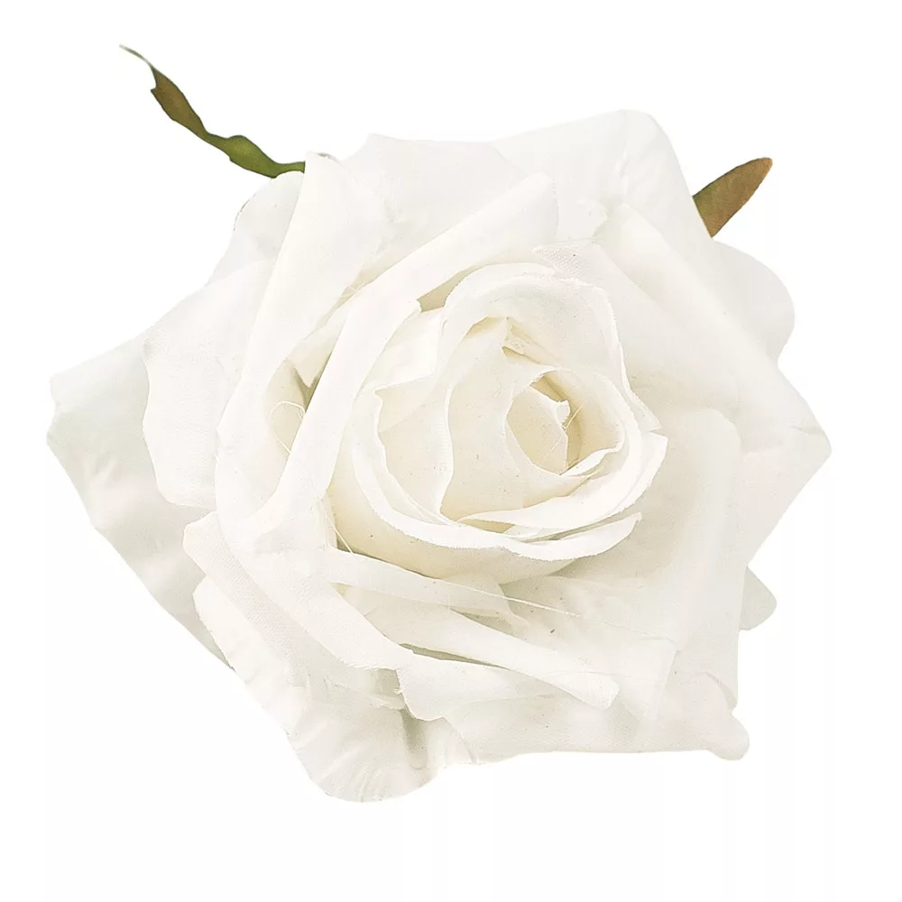 Biela zamatová ružová hlava, ktorá vyžaruje čistotu a eleganciu. Tento 8 cm priemerový kvet je dokonalý na svadobné alebo slávnostné dekorácie.5999093347879